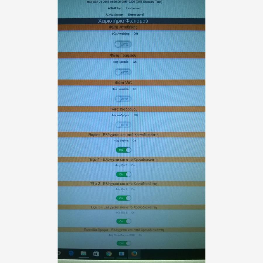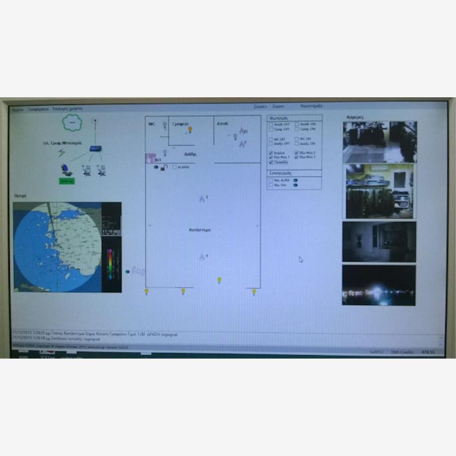 Εγκατάσταση συστήματος SCADA σε συνδυασμό με φωτισμό, συναγερμό και πυραφάλεια καταστήματος. Ελέγχεται πλήρως αυτόματα βάσει παρουσίας ή χρόνου ή χειροκίνητα, τοπικά ή απομακρυσμένα ο εσωτερικός φωτισμός καθώς και οι λειτουργίες του συναγερμού και της πυραφάλειας. Ταυτόχρονα γίνεται επιβεβαίωση των συμβάντων συναγερμού με χρήση καμερών. Ειδοποίηση προσωπικού για συμβάντα, παρακολούθηση και χειρισμοί μέσω διαδικτύου.