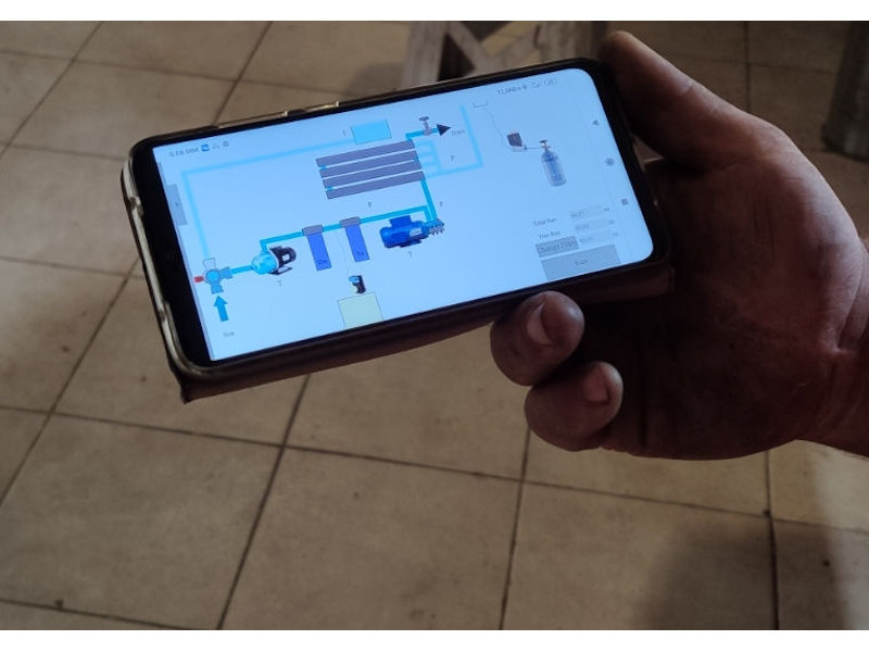 Μετά την πρώτη δοκιμή κάθε μεμβρανοδοχείου και μεμβράνης με θαλασσινό νερό και με την αντλία υψηλής πίεσης, είχαμε πλέον όλοι πειστεί ότι αυτός ο σωρός υλικών άρχιζε να ξεκαθαρίζει και να μοιάζει με μονάδα υπό κατασκευή. Επειδή δεν είχαμε κανένα στοιχείο για το πως λειτουργούσε αρχικά η μονάδα χρησιμοποιήσαμε το πρόγραμμα παραγωγής προβολών λειτουργίας των μεμβρανών προκειμένου να εκτιμήσουμε τα σημεία λειτουργίας της μονάδας, βάσει της δυναμικότητας της αντλίας υψηλής πίεσης. Κατόπιν θέσαμε κάποιους βασικούς κανόνες για τη λειτουργία της μονάδας, όπως για παράδειγμα, πως έπρεπε να λειτουργεί η προφίλτρανση, η απαίτηση για δοσομέτρηση αντικαθαλατωτικού στην είσοδο για αποφυγή καθαλατώσεων στις μεμβράνες, η έκπλυση του εξοπλισμού με γλυκό νερό στο τέλος του κύκλου λειτουργίας, η επανα-σκλήρυνση του παραγόμενου νερού, τα βασικά στοιχεία ασφαλούς λειτουργίας της μονάδας καθώς και τα μηχανικά όργανα που απαιτούνται για τη ρύθμισή της. Η μονάδα επεξεργάζεται 840 λίτρα ανά ώρα θάλασσα και παράγει 240λίτρα ανά ώρα πόσιμο νερό.